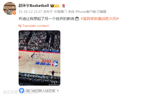 “乔迪让我想起了另一个姓乔的教练。”该媒体人在社媒上写道。