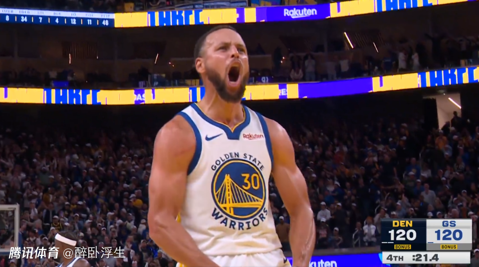 库里第四节最后时刻命中超远扳平三分,怒吼庆祝拖进加时赛。