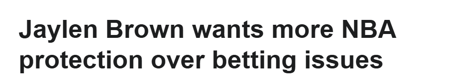 “他们(NBA)就像是在说,‘你赚了这么多钱,就应该能够应对所有额外的负面情况,应对那些来跟你谈连串投注的人’,”布朗在凯尔特人对阵尼克斯之前说道,“当涉及金钱时,这会在比赛和球员周围产生负面的舆论氛围……如果现在能展开更多的讨论,我们本可以避免一些情况的发生。”