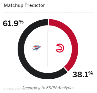 雷霆胜率61.9%,老鹰胜率38.1%。