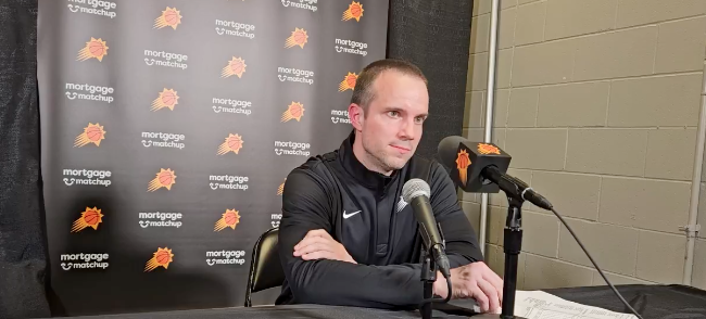 2025-10-26 13:30北京时间10月26日,NBA常规赛,太阳以111-133不敌掘金,赛后太阳主帅奥特接受了媒体的采访。