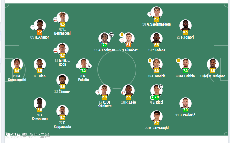 替补未登场:57-斯波尔蒂耶洛、31-罗西、23-科拉希纳茨、40-奥比里奇、59-扎莱夫斯基、9-斯卡马卡、70-马尔蒂尼、7-苏莱马纳、90-克尔斯托维奇