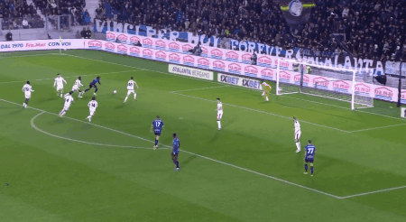 第35分钟,帕沙利奇直塞,卢克曼左脚爆射入网,亚特兰大扳平比分。