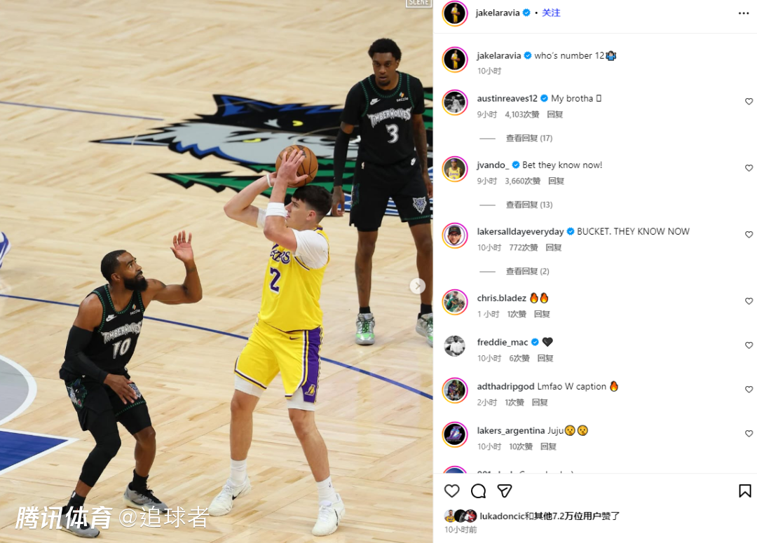 东契奇点赞力挺拉拉维亚,湖人其他球员在评论区互动——