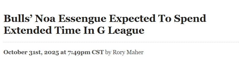 比瀚森还惨?公牛确定下放12号秀到G联赛锻炼:开季至今从未上过场