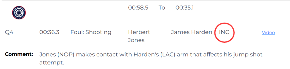 第二次是错判,发生在距离比赛结束还有19.9秒,哈登和对方的萨迪克-贝在篮下拼抢篮板,裁判吹罚哈登抢篮板犯规。裁判报告指出,哈登在拼抢篮板时前臂与贝的上半身有接触,但接触程度非常轻微,没有达到犯规的级别。这次错判也是快船吃亏,鹈鹕获利。
