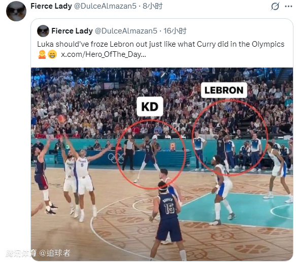 东契奇唇语曝光引热议,美球迷表示,再看看最后一次进攻,勒布朗全程都在喊着要球,难怪他犹豫了;也有球迷晒照表示,东契奇应该像库里在巴黎奥运会赛场上那样,不要在乎勒布朗伸手要球。