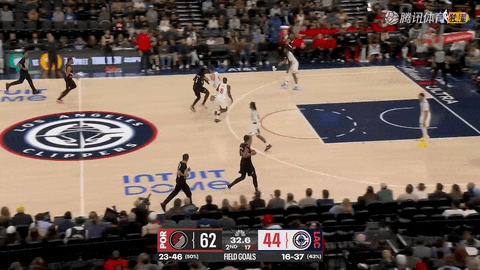 第二节结束压哨,洛佩斯补篮命中,将比分追到开拓者62-46快船。