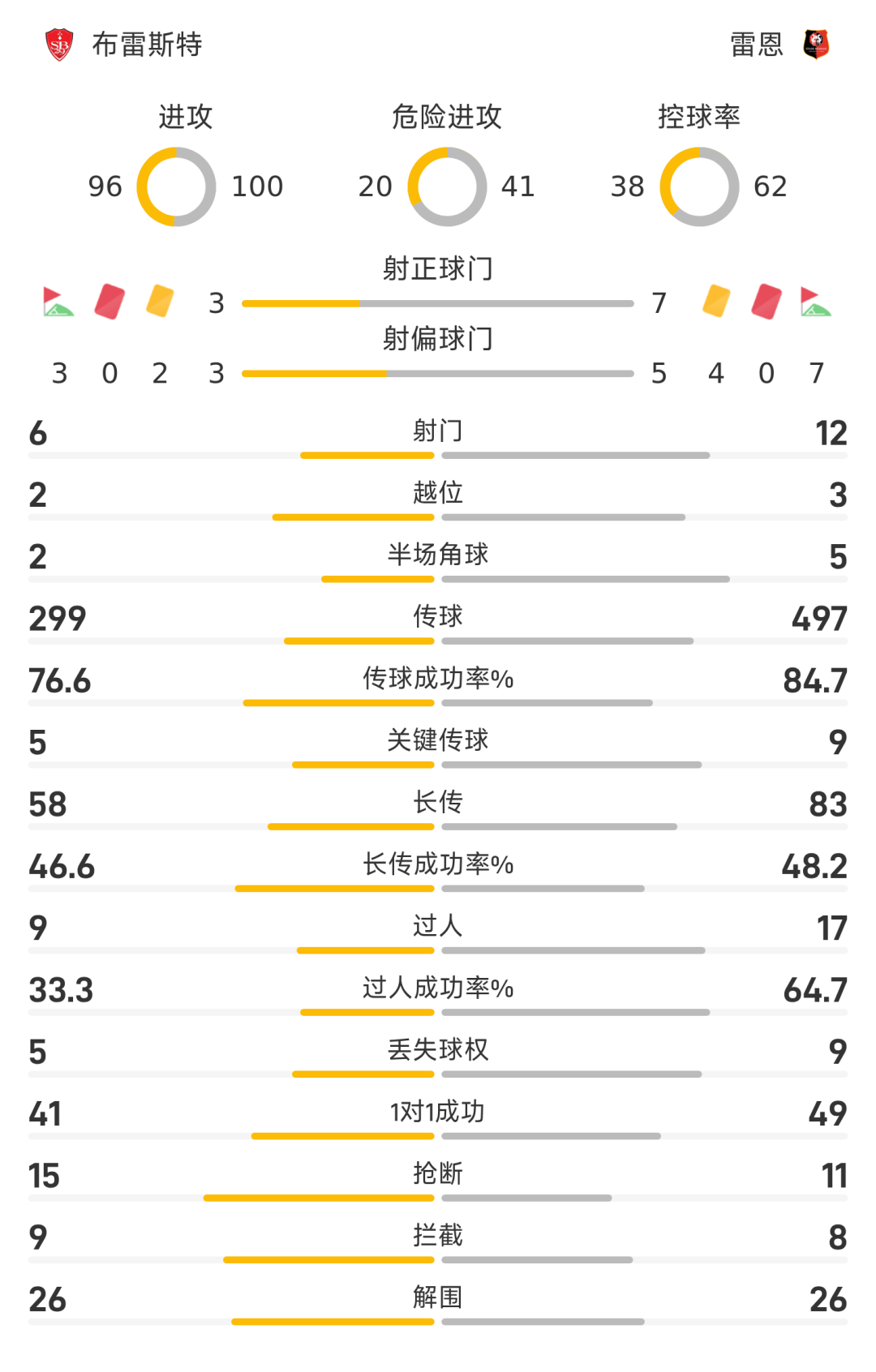 60’黄牌-布拉希尔(雷恩) 犯规