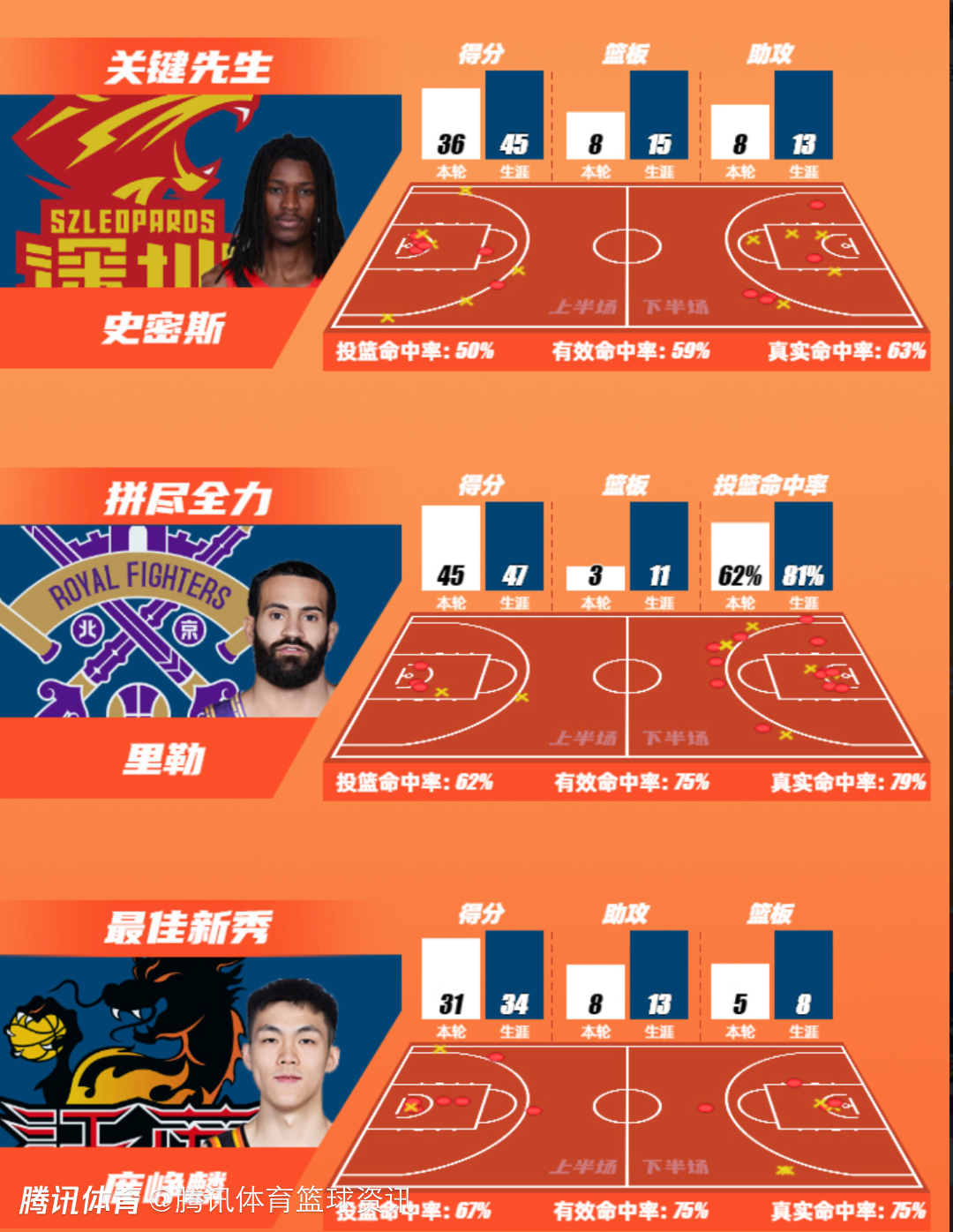 北京控股篮球俱乐部球员里勒以单场45分的数据领衔得分榜;