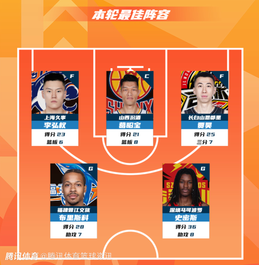 2026-04-05 09:20北京时间4月5日,CBA官方公布了常规赛第34轮数据战报和最佳阵容名单,来自上海久事大鲨鱼的李弘权(23分6篮板),山西汾酒职业篮球俱乐部的葛昭宝(21分8篮板),吉林东北虎男篮的贾昊(25分7三分),福建浔兴SBS男篮的布里斯科(28分7助攻)和深圳新世纪烈豹篮球俱乐部的史密斯(36分8助攻)入选CBA联赛常规赛第34轮最佳阵容!