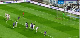 上半场补时第1分钟,哈达斯主罚禁区前沿任意球,越过人墙角度太正被薛庆浩没收。