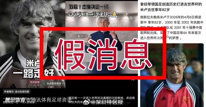 2026-04-07 13:40北京时间4月7日,针对网络上传出的“前国足主帅博拉·米卢蒂诺维奇去世”消息,《深圳特区报》进行了核实辟谣。