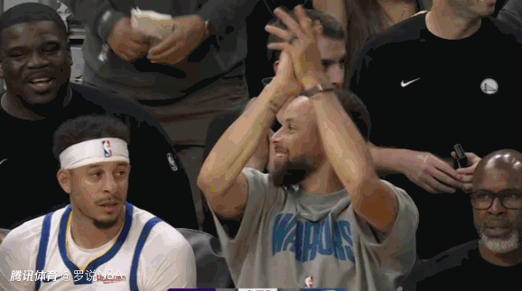 库里本场轮休,场边观战,为队友巴锡的表现开心鼓掌!