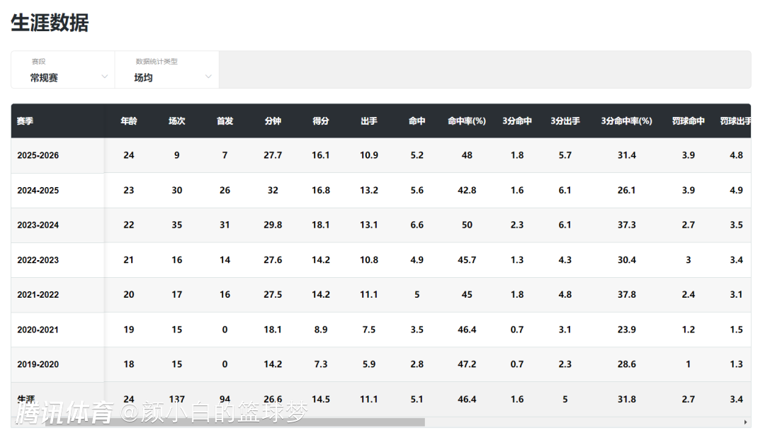 今年25岁的罗欣棫已经在WCBA打了7个赛季,场均26.6分钟,拿到14.5分5.2篮板2.6助攻1.1抢断0.4盖帽,命中率46.4%,三分命中率31.8%。罗欣棫已经算是联赛的顶级3D锋线了。