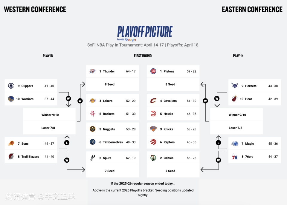 最终排名:快船第8对决太阳,开拓者第9对决勇士