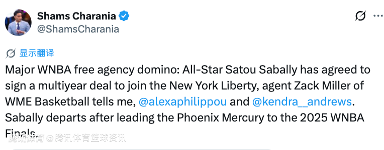 2026-04-12 01:30北京时间4月12日,据名记Shams报道,WNBA全明星球员萨图-萨巴利已同意签下一份多年合同,加盟纽约自由人队。萨巴利在去年带领菲尼克斯水星队打入总决赛后,选择离开球队。