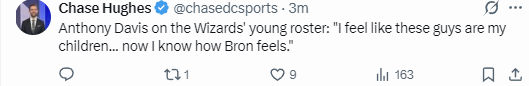在谈到奇才队的年轻阵容及天赋时,戴维斯说道:“我感觉这些小伙子就像我的孩子一样,现在我总算懂詹姆斯当时是什么感受了。球队的天赋真的让我大开眼界,我之前不知道这些球员里有不少人实力这么强。萨尔的防守能力很强,我也在教他进攻技巧。”