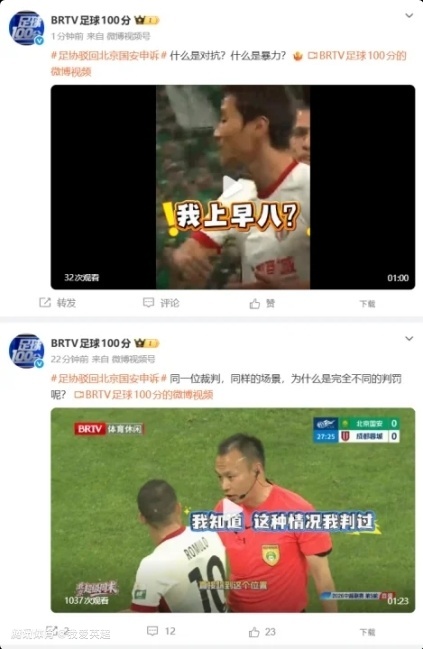 2026-04-15 21:20北京时间4月15日晚,在国安上轮中超3起上诉被驳回后,国安“喉舌”媒体《足球100分》栏目官方账号,连发两条视频质疑足协。