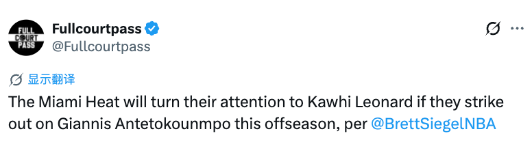 2026-04-16 01:50北京时间4月16日,据美记Brett Siegel报道,如果迈阿密热火今年休赛期没能成功交易得到字母哥,他们就会把引援目标转向莱昂纳德。希罗被视为具有较高的交易价值,可能成为换取球星的关键筹码。