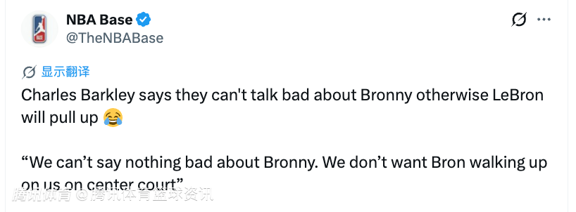 巴克利表示:“我们都不能说布朗尼半句坏话,就怕勒布朗直接冲到演播室/球场中央,当面找我们算账!”