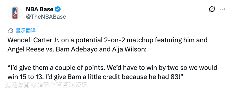 2026-04-16 02:00北京时间4月16日,近日,魔术球员小温德尔-卡特被问到,如果他和绯闻女友安吉尔-里斯组队,对阵阿德巴约与阿贾-威尔逊,结果会怎样的话题。