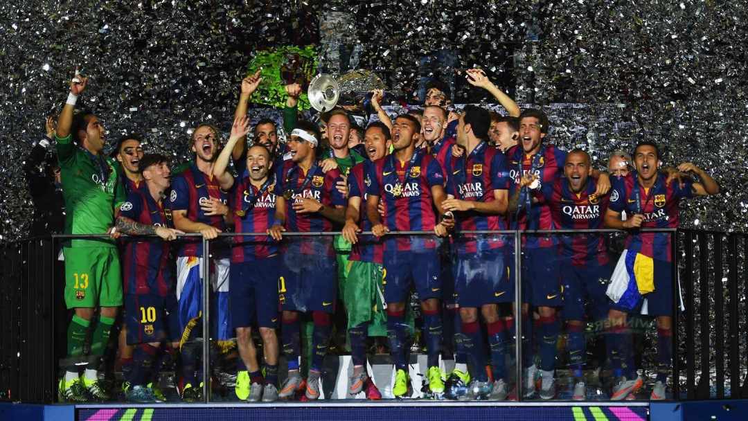 2015年6月6日,柏林奥林匹克球场。拉基蒂奇开场破门,苏亚雷斯和内马尔各入一球,巴萨3比1击败尤文图斯,捧起队史第五座欧冠奖杯。同一赛季,球队包揽西甲、国王杯和欧冠三项冠军,成为欧洲足坛首支两次加冕三冠王的俱乐部。