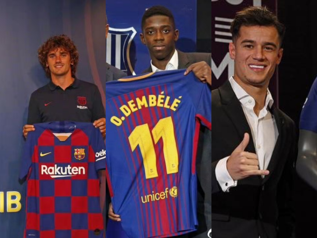 手握巨额现金的巴萨管理层陷入恐慌性购买。2017年夏窗,他们以1.35亿欧元从多特蒙德签下登贝莱;次年冬天,又从利物浦以1.2亿欧元挖来库蒂尼奥;2019年夏天,再从直接竞争对手马竞阵中,以1.2亿欧元触发格列兹曼的解约金条款。