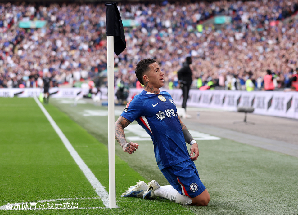 第23分钟,切尔西右路攻势,内托传中,恩佐小禁区前甩头破门,切尔西1-0领先利兹联。进球后,恩佐激动跪滑庆祝。