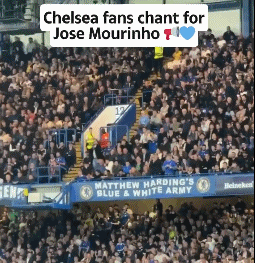 切尔西vs本菲卡之战,球迷3次高呼“若泽-穆里尼奥”。斯坦福桥著名的马修-哈丁看台(北看台)、谢德看台(南看台),唱起了穆里尼奥的歌声。