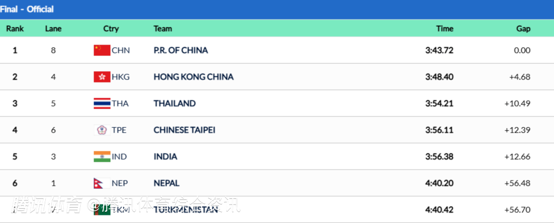 亚洲游泳锦标赛女子4x100米自由泳接力决赛:中国队游出3分43秒72 拿到金牌