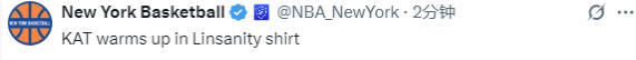 2025-10-03 00:00北京时间10月2日,尼克斯队将在NBA季前赛中迎战76人队,在赛前热身环节,唐斯身穿了一件印有“林疯狂”字样的训练服。