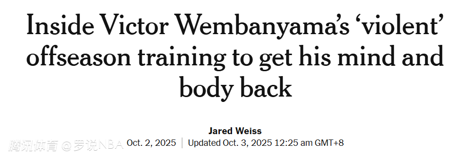 2025-10-03 14:50北京时间10月3日,距离马刺的首场季前赛越来越近了,球迷们对文班亚马的第三个赛季充满期待。知名美媒The Athletic撰写了一篇关于文班亚马今夏魔鬼训练的揭秘。这位21岁的马刺新星是如何挑战自我的极限呢?以下是文章主要内容——