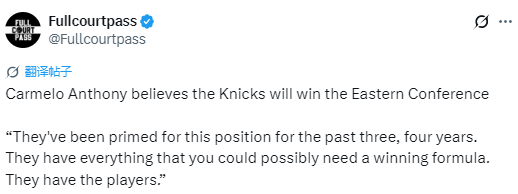 安东尼:坚信尼克斯将夺新赛季东部冠军 球队已备齐赢球要素