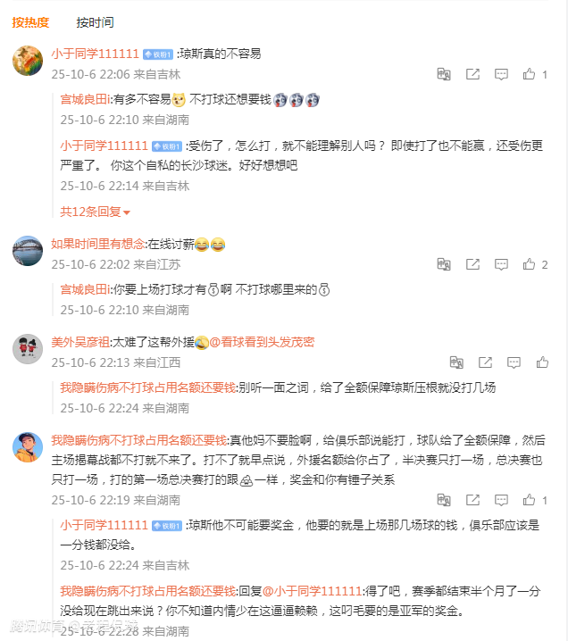 在琼斯社媒的评论区,有支持他讨薪的,也有质疑他是一面之词,而且是隐瞒伤病坑害湖南队的。