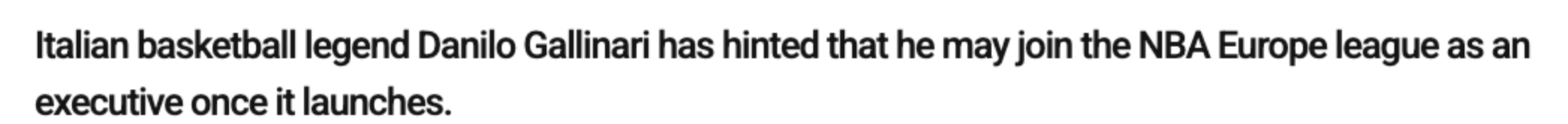 “不,我不会回到欧洲打球。但如果NBA欧洲联赛顺利启动,我有可能以高管的身份参与到这个项目中。”加里纳利说道。