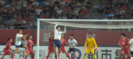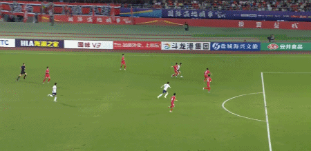第35分钟,许旸连续扣开防守杀入禁区,但最后的低射,被盐城队门将倒地将球没收。