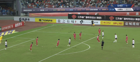 第25分钟,无锡队开出右侧角球,盐城队后卫乌龙助攻,吴磊近距离扫射得手,经过VAR复审之后,吴磊进球有效,无锡队取得1-0的领先。