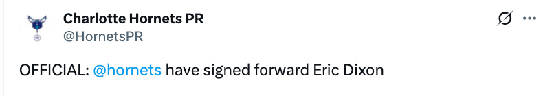 上个月刚被湖人裁掉!黄蜂官方宣布签约NCAA得分王埃里克-迪克森