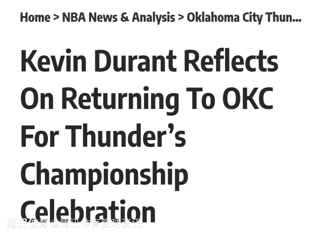 37岁的杜兰特曾在雷霆队效力9个赛季,期间场均能得到27.4分、7.0个篮板和3.7次助攻,投篮命中率达48.3%。他曾是这支球队近十年的招牌人物,多次带领球队打进季后赛,并在2012年闯入总决赛。2014年,他以场均32.0分的联盟得分王表现,成功斩获常规赛MVP。
