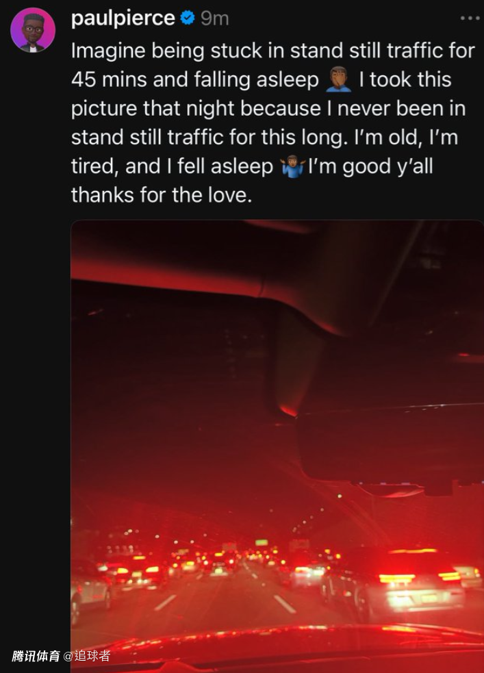 2025-10-10 11:50北京时间10月10日,美八卦媒体TMZ报道,NBA名宿保罗-皮尔斯涉嫌酒驾被逮捕,之后皮尔斯晒照澄清,并解释因堵车而睡着了,直言自己老了,容易累。
