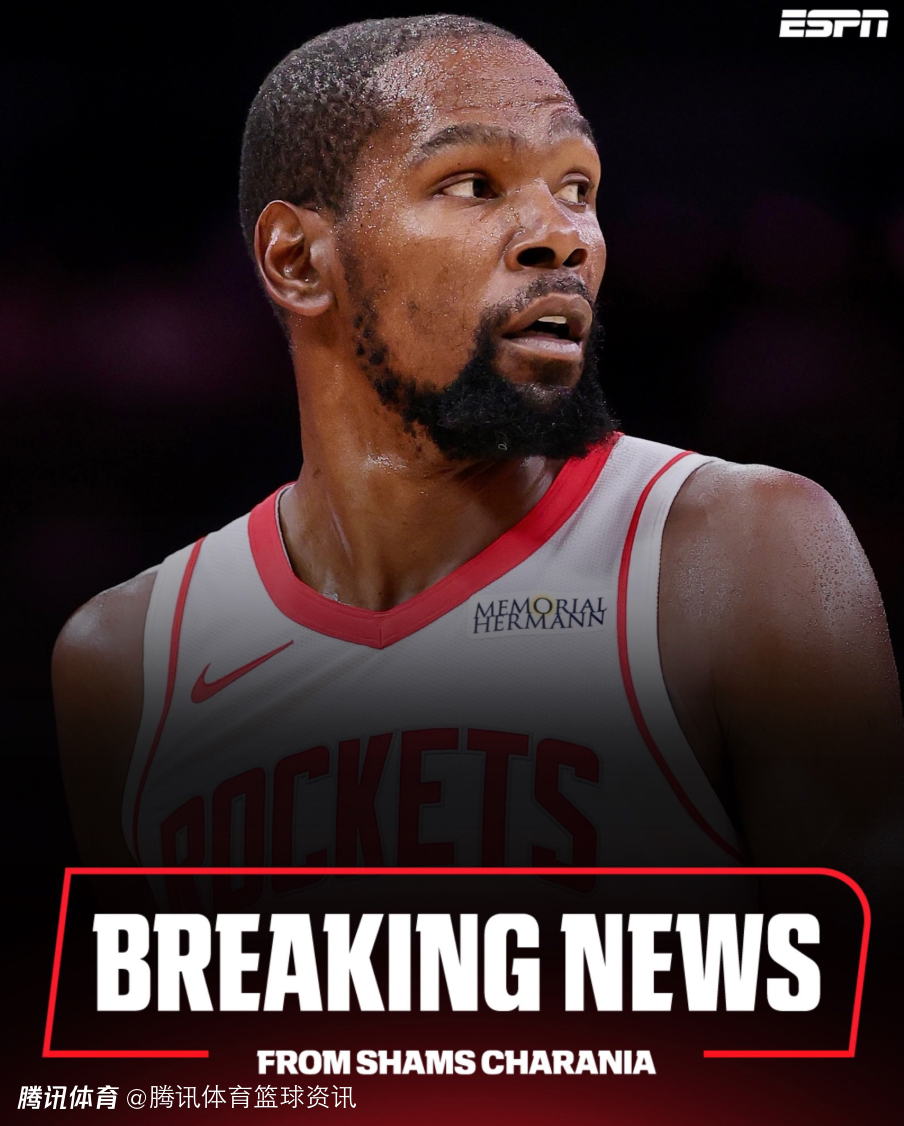 Shams:杜兰特2年9000万提前续约火箭 第二年为球员选项
