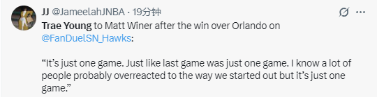 2025-10-25 10:30北京时间10月25日,NBA常规赛继续进行,老鹰队111-107击败魔术队。老鹰队后卫特雷-杨此役18投7中得到25分6助攻,赛后,杨接受媒体采访。