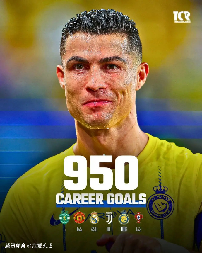 而他距离生涯1000球的里程碑,只剩下50球。随着C罗与利雅得胜利续约至2027年6月,至少还会踢2年的他,实现千球目标相信只是时间问题。