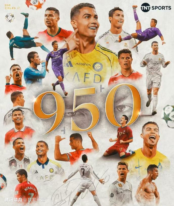 而本场比赛,40岁的葡萄牙巨星C罗在比赛尾声,打进球队锁定胜局的1球,达成了生涯950球里程碑。