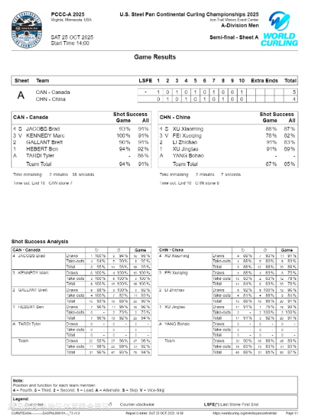泛洲际冰壶赛半决赛:中国男队4-5惜败加拿大 将与日本争铜牌
