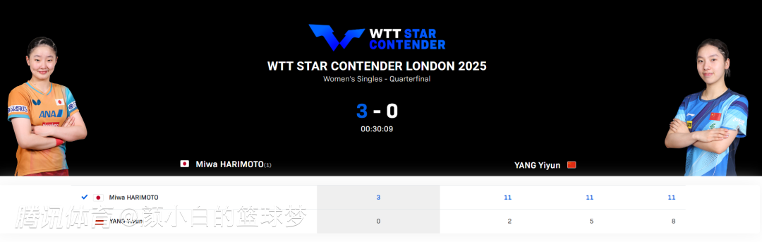 2025-10-26 08:50北京时间10月26日凌晨,WTT伦敦球星挑战赛女单1/4决赛,日乒选手张本美和3-0横扫国乒选手杨屹韵,三局比分:11-2、11-5、11-8,换言之这场还是日乒一姐也是本次挑战赛头号种子只让国乒独苗三局拿15分而已。
