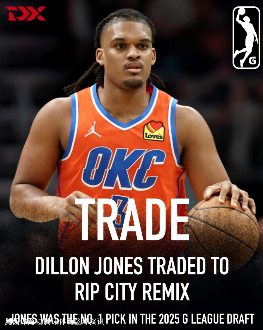 琼斯上赛季曾随俄克拉荷马雷霆队夺得NBA总冠军,近期,他在G联盟选秀大会中成为状元秀。