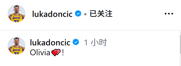 东契奇正式宣布第二个女儿出生:取名奥利维亚 最快周一复出战76人