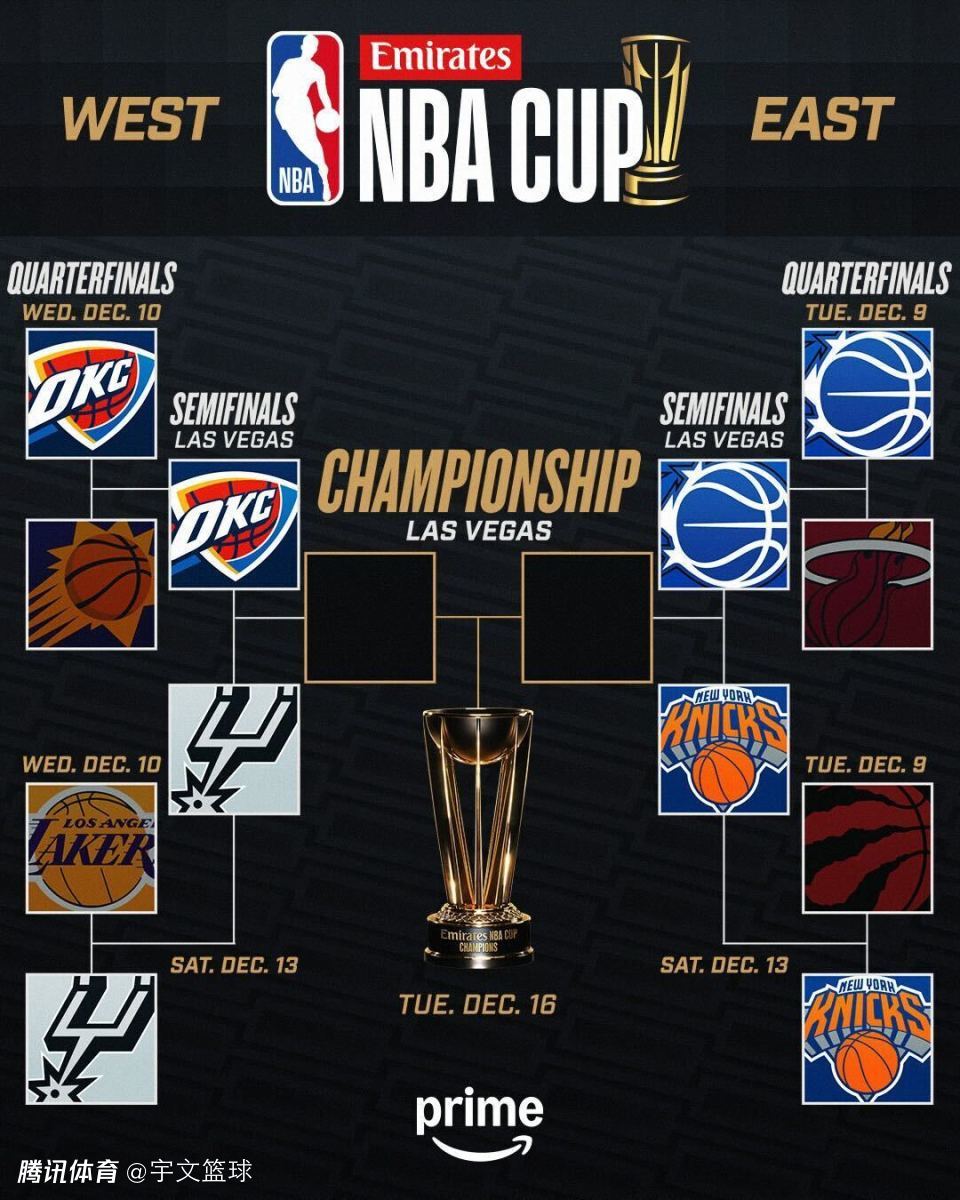 NBA杯四强前瞻:尼克斯魔术争夺决赛门票 文班复出欲终结雷霆16连胜